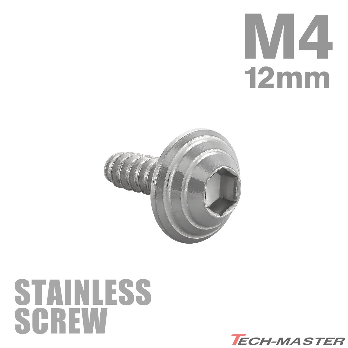 ステンレスネジ M4×12mm タッピングビス 六角穴 シェルヘッド シルバーカラー 1個 TC0076