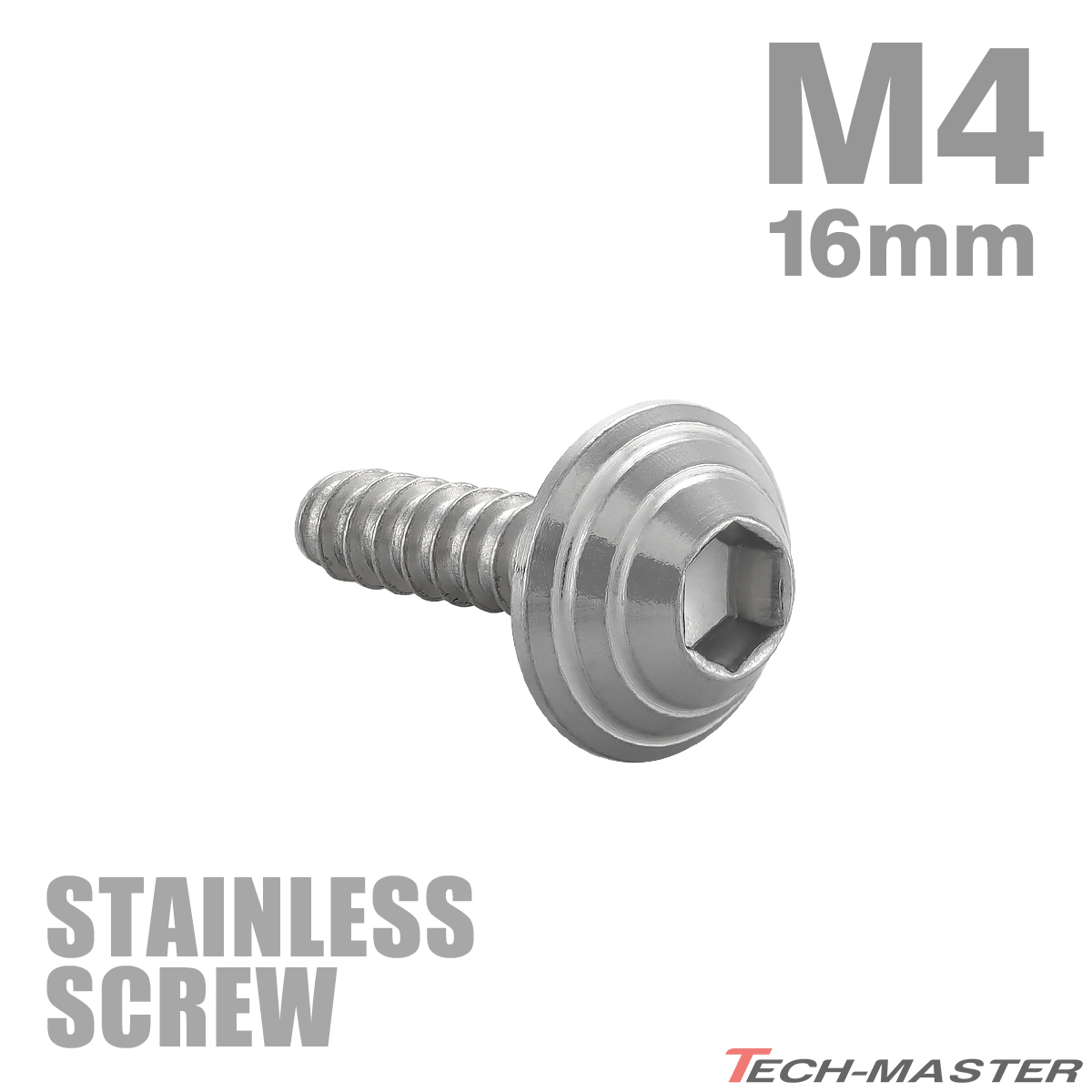 ステンレスネジ M4×16mm タッピングビス 六角穴 シェルヘッド シルバーカラー 1個 TC0077