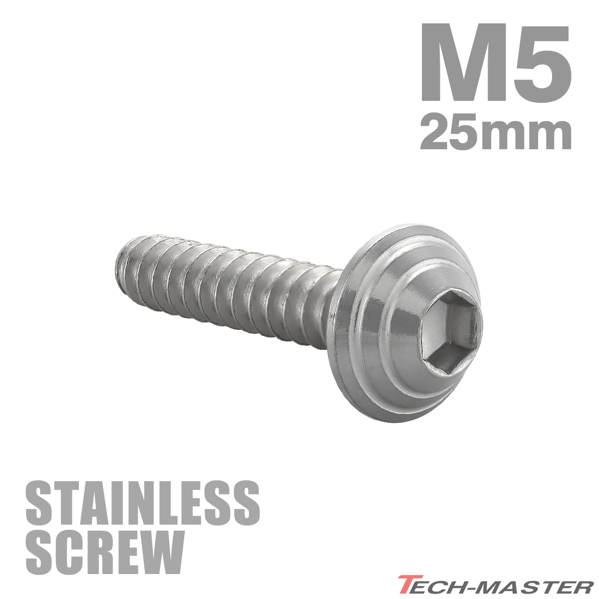 ステンレスネジ M5×25mm タッピングビス 六角穴 シェルヘッド シルバーカラー 1個 TC0080