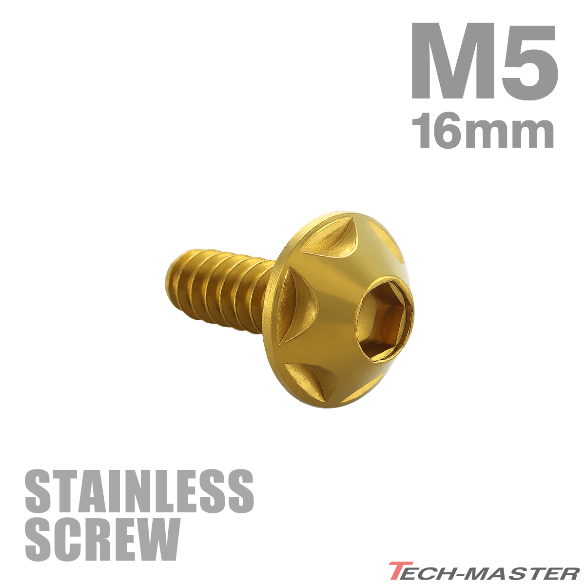 ステンレスネジ M5×16mm タッピングビス 六角穴 スターヘッド ゴールドカラー 1個 TC0128
