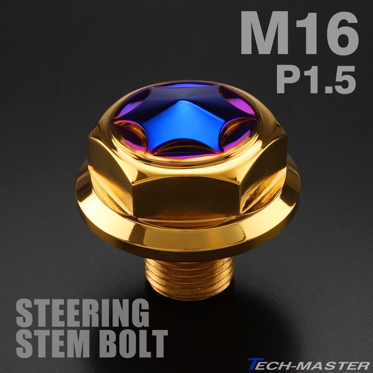 ステアリング ステムボルト M16 P1.50 スターヘッド SUSステンレス ゴールド&ブルー TH0169