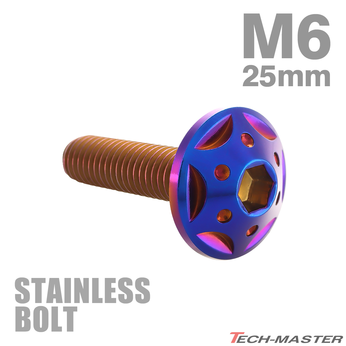 ステンレスボルト M6×25mm P1.0 ボタンボルト スターホールヘッド 焼きチタンカラー TR0250
