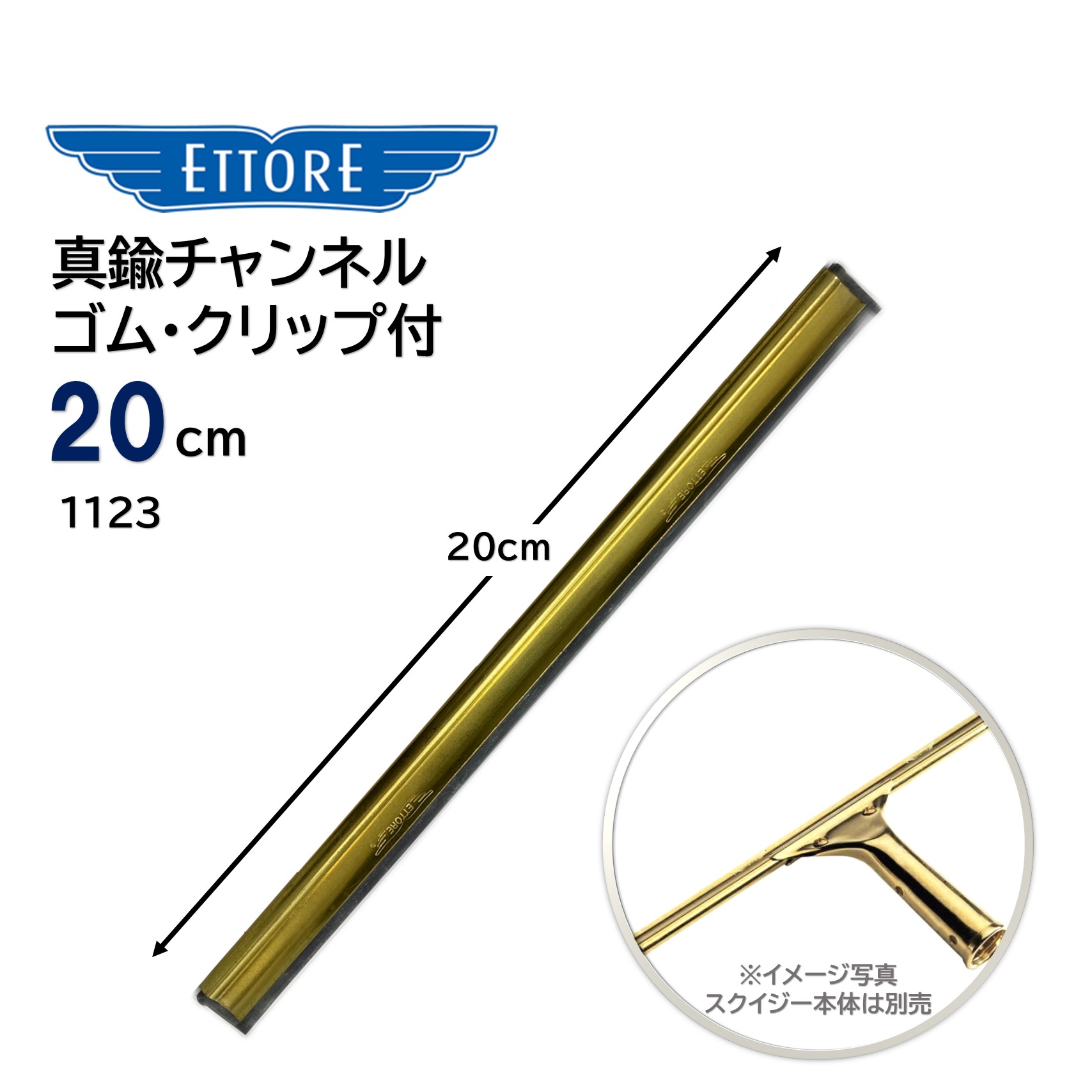 ETTORE エトレ 真鍮チャンネル 20cm (1本) ラバーゴム付 クリップ付 プロ用 ガラス清掃 1123 JI 大特価セール