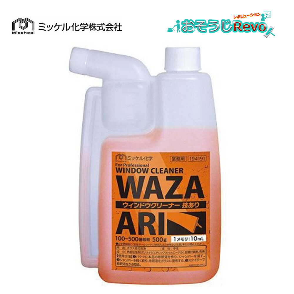 ミッケル化学 ウィンドウクリーナー 技あり 500g (1本)ガラスクリーナー プロ用 希釈倍率100倍-500倍 194190 JI 大特価セール