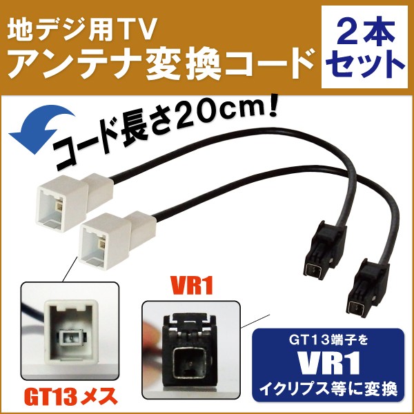 〜メール便発送可能! ナビは乗せ替えたいが純正TVアンテナはそのまま使いたい〜 商品名:車両純正TVアンテナGT13タイプをイクリプス等のVR1コネクターに変換するケーブル2本セット 車両側のTVアンテナGT13形状を画像形状でご確認いただいた上で落札してください 純正車両側のコネクタGT13オスをコネクタGT13メスに挿入し ナビコネクタVR1オスに切り替える変換ケーブルです 弊社提携工場での製造のため、品質を落とさず、価格を極限まで落とすことに成功しました。 純正品ではありませんが、専門家監修により作成された製品ですので、御安心ください 大量購入をご希望の方は質問よりお問い合わせください | ||