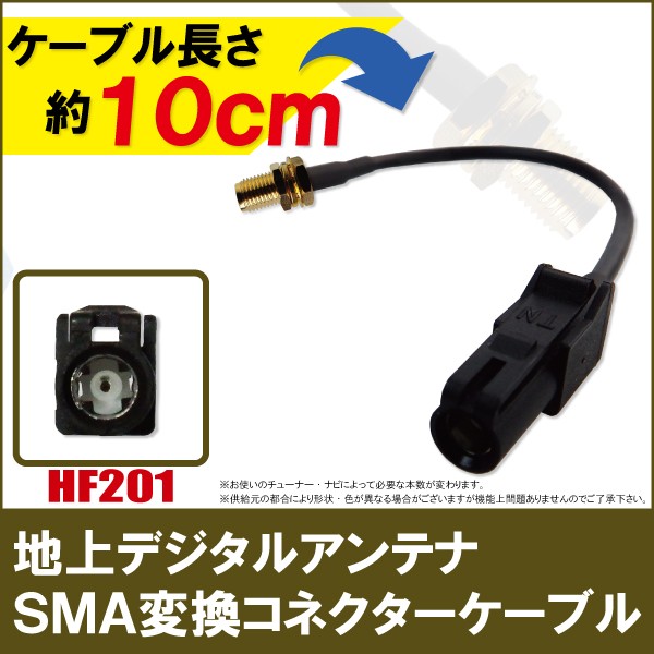 〜メール便発送可能!地デジアンテナ用変換ハーネス〜 商品名:アンテナ変換ケーブル(SMAメス→HF201) ※ケンウッド等に使われているHF201S-01とは異なります。ご注意ください。 ワンセグからフルセグまで、地デジに対応した機器の外部アンテナ変換コネクタとしてご使用いただけます。 サイズ:全長約10cm 付属品:なし 価格の安さは工場直送ならではのお客様にお求めやすい価格となっております。 コネクタ形状をよくご確認の上、お買い求めください。 大量購入をご希望の方は質問よりお問い合わせください。 SMA変換ケーブルGT16端子はこちら SMA変換ケーブルGT13端子はこちら SMA変換ケーブルVR1端子はこちら SMA変換ケーブルHF201端子はこちら SMA変換ケーブルHF201S-01端子はこちら SMA変換ケーブルイクリプス用端子はこちら | ||