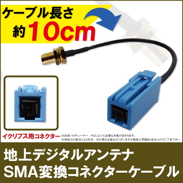 〜メール便発送可能!地デジアンテナ用変換ハーネス〜 商品名:アンテナ変換ケーブル ワンセグからフルセグまで、地デジに対応した機器の外部アンテナ変換コネクタとしてご使用いただけます。 サイズ:全長約10cm 付属品:なし 価格の安さは工場直送ならではのお客様にお求めやすい価格となっております。 コネクタ形状をよくご確認の上、お買い求めください。 大量購入をご希望の方は質問よりお問い合わせください。 SMA変換ケーブルGT16端子はこちら SMA変換ケーブルGT13端子はこちら SMA変換ケーブルVR1端子はこちら SMA変換ケーブルHF201端子はこちら SMA変換ケーブルHF201S-01端子はこちら SMA変換ケーブルイクリプス用端子はこちら | ||