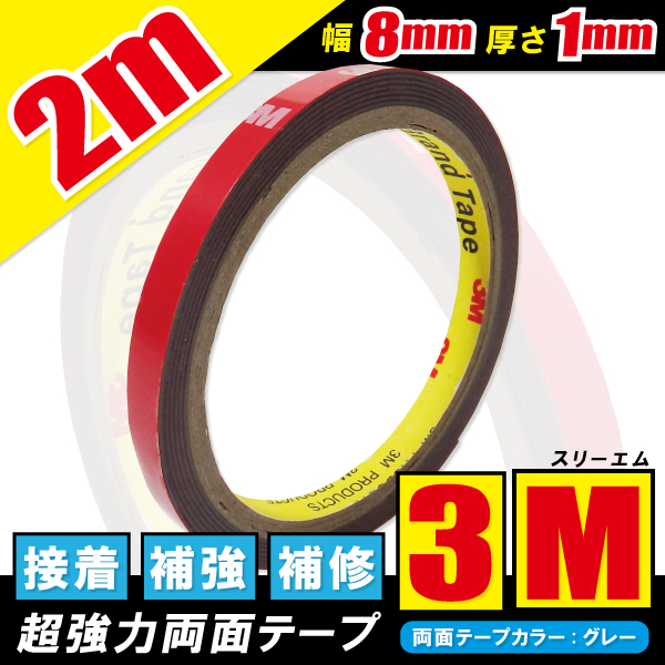 こちらの商品は強力3M両面テープ2mになります。 取り付け、補強、様々な用途でご使用いただけます。 両面テープを張り付ける前に接着部分を脱脂していただきますと、より効果を感じられます。