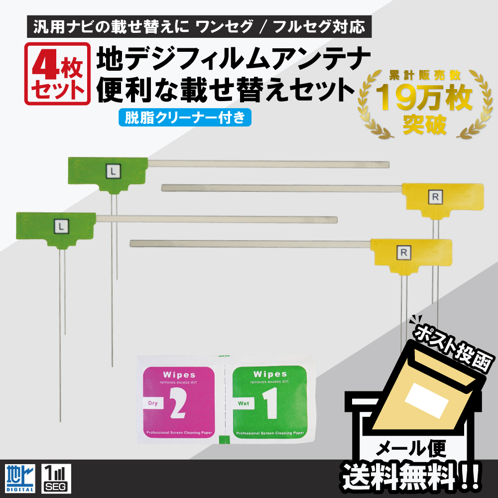 フィルムアンテナ 4枚 セット 地デジ クリーナー付 カロッツェリア イクリプス クラリオン 他 ナビ L字型