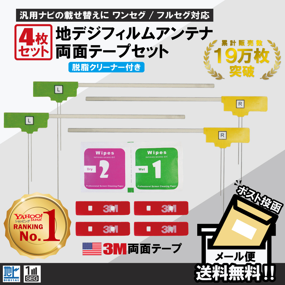 〜フィルムアンテナと両面テープと脱脂クリーナーのセット〜 弊社提携工場での直接大量製造のため、品質を落とさず、価格を極限まで落とすことに成功しました。 純正品ではありませんが、専門家監修により作成された製品ですので、御安心ください。 フィルムアンテナはエレメント部分だけ残るタイプを採用。 (エレメントと透明部分約1-2mmを残してカットされています) 表面のフィルムを剥がすと、シルバーのエレメントのみが残ります。 両面テープはJIS規格1種レベルに適合しています。 接着後の使用温度範囲:-20度〜150度 商品を厚紙に挟み、曲がらないように発送します。 ワンセグからフルセグまで、地デジに対応した機器の外部アンテナとしてご使用いただけます。 取付形状をよくご確認の上、お買い求めください。 大量購入をご希望の方は質問よりお問い合わせください。 | ||
