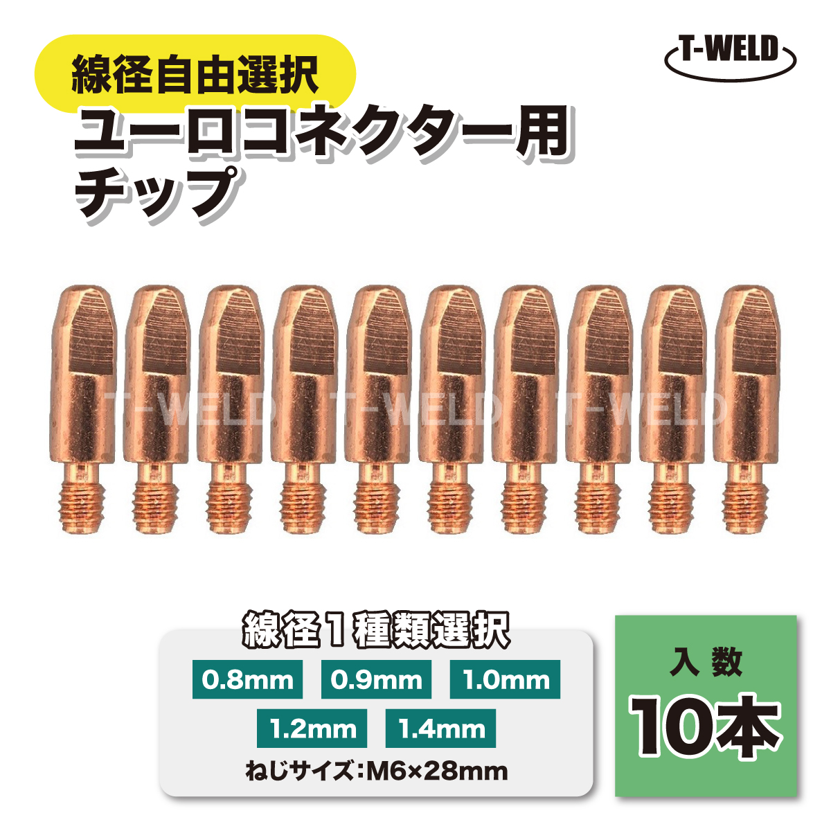 線径自由選択 ユーロコネクター用 チップ ねじサイズ:M6×28mm 10本 ( 0.8mm 0.9mm 1.0mm 1.2mm 1.4mm )