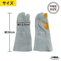 溶接 鉄鋼 建設 作業用 革手 3本指 牛革手袋 本色 長さL:36cm 3カ所あて付き サンプル1双 BBQ アウトドア 保護具 グローブ 内縫い