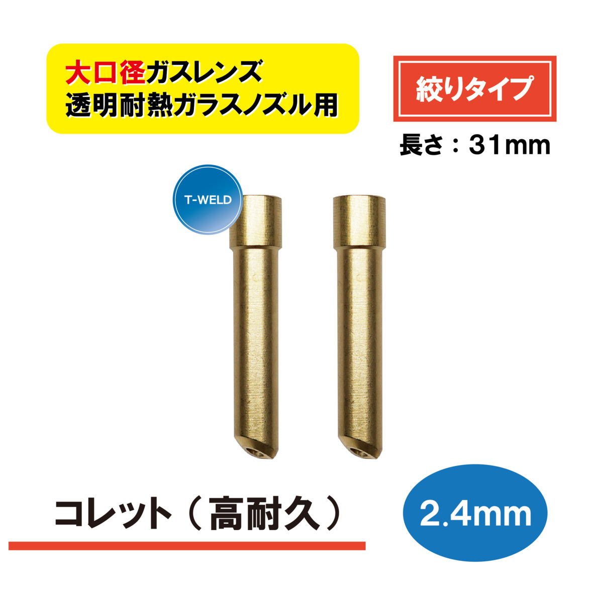 TIG 溶接 WP-17/18/26 大口径ガスレンズ 「絞りタイプ」 透明耐熱ガラスノズル用 コレット 2.4mm