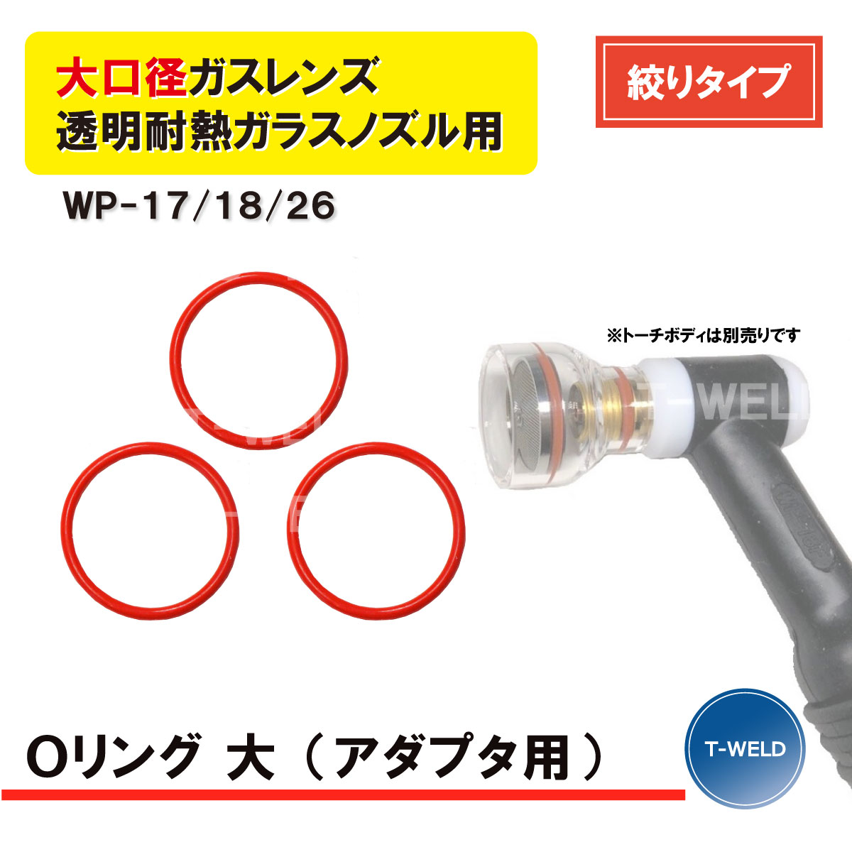 TIG 溶接 WP-17/18/26 大口径ガスレンズ 絞りタイプ 透明耐熱ガラスノズル Oリング (大) 3枚 アダプタスクリーン網用