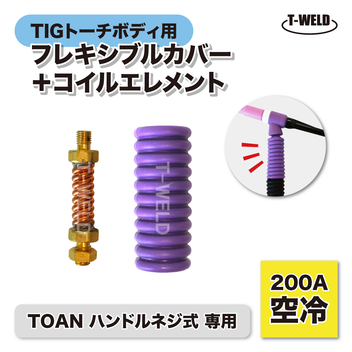 TIG トーチボディ TOAN ハンドルネジ式 専用 200A 空冷 フレキシブルカバー + コイルエレメント 1セット インボイス対応領収書発行可