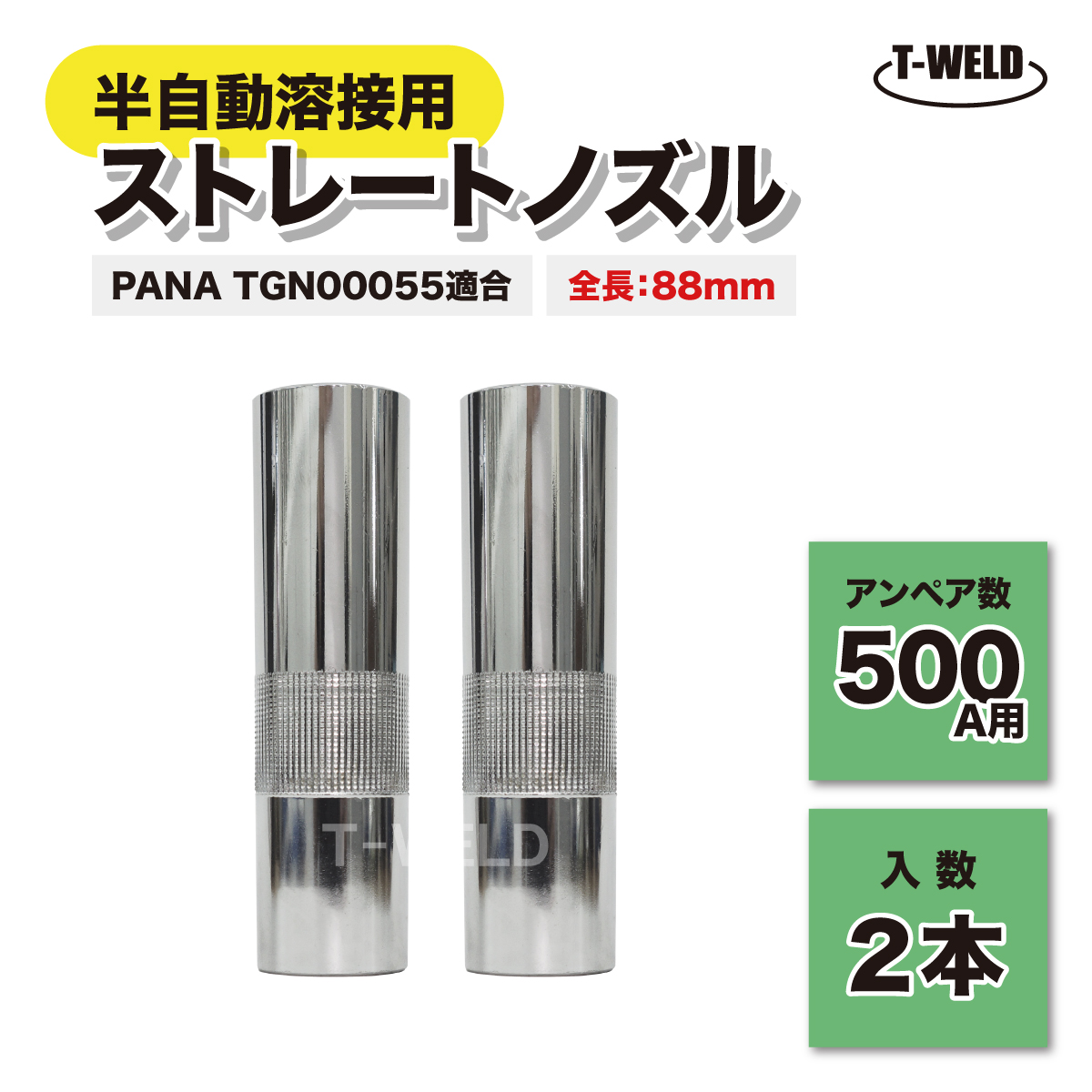 半自動溶接機 PANA 500A ストレートノズル TGN00055 適合 全長88mm 2本セット 半自動 CO2 トーチ用 消耗品 インボイス領収書発行可