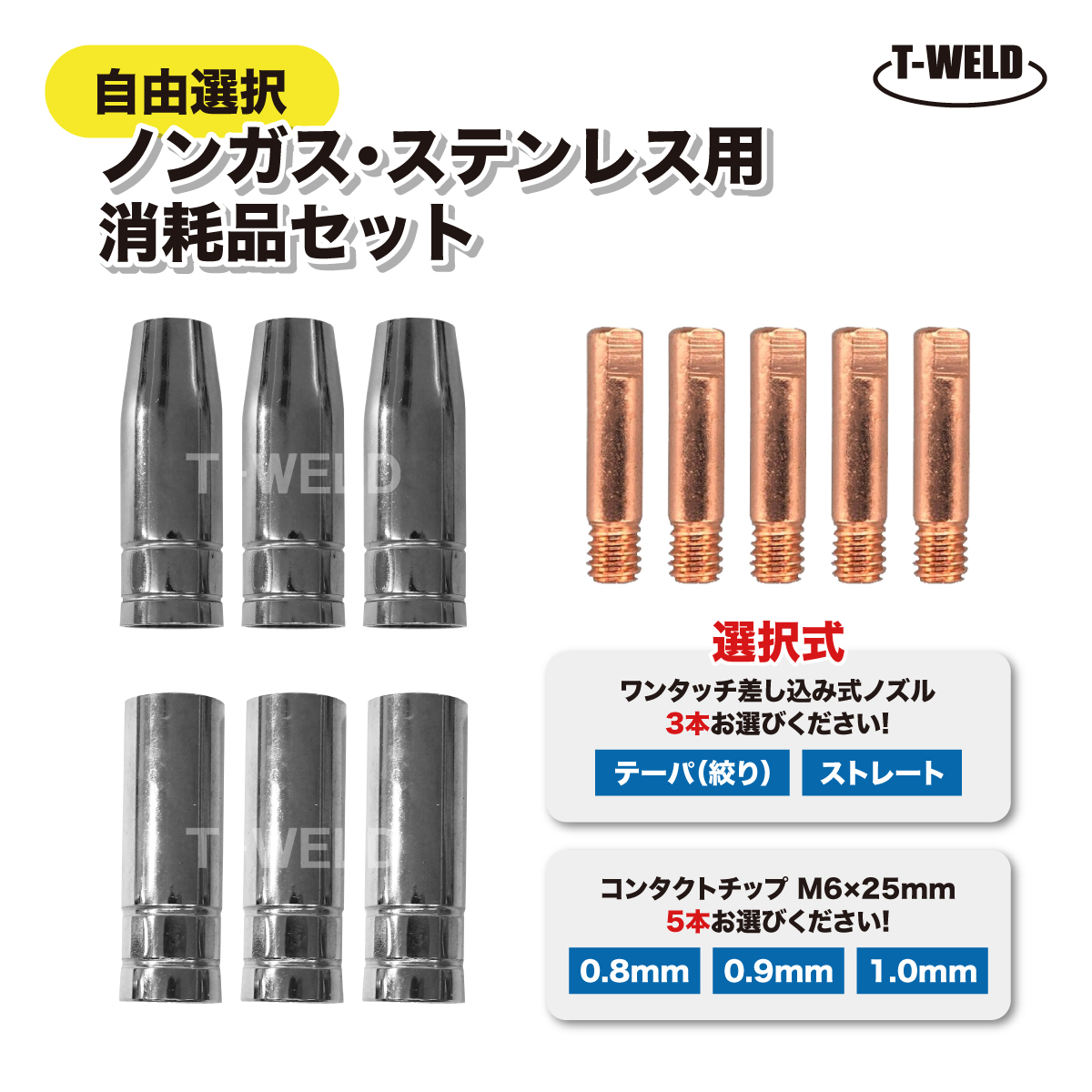 半自動溶接機 ノンガス ステンレス用 150A 消耗品セット ノズル 3本 ( テーパ (絞り)・ストレート ) チップ 5本 ( 0.8mm 0.9mm 1.0mm )