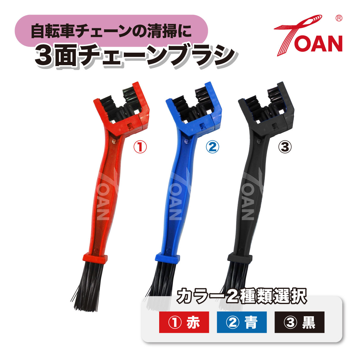3面チェーンブラシ 2本セット ( カラー選択式:青色 赤色 黒色 ) ( バイク 自転車 チェーンクリーナー3面ブラシ クリーニングブラシ )