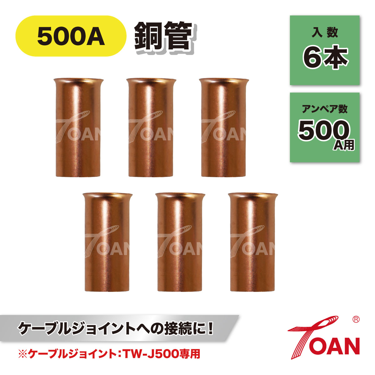 溶接 500A 銅管 入数: 6本 ( ケーブルジョイント TW-J500 専用 ) 長さ:3cm 太さ:1.6cm 円形(内径):1.3cm インボイス対応領収書発行可