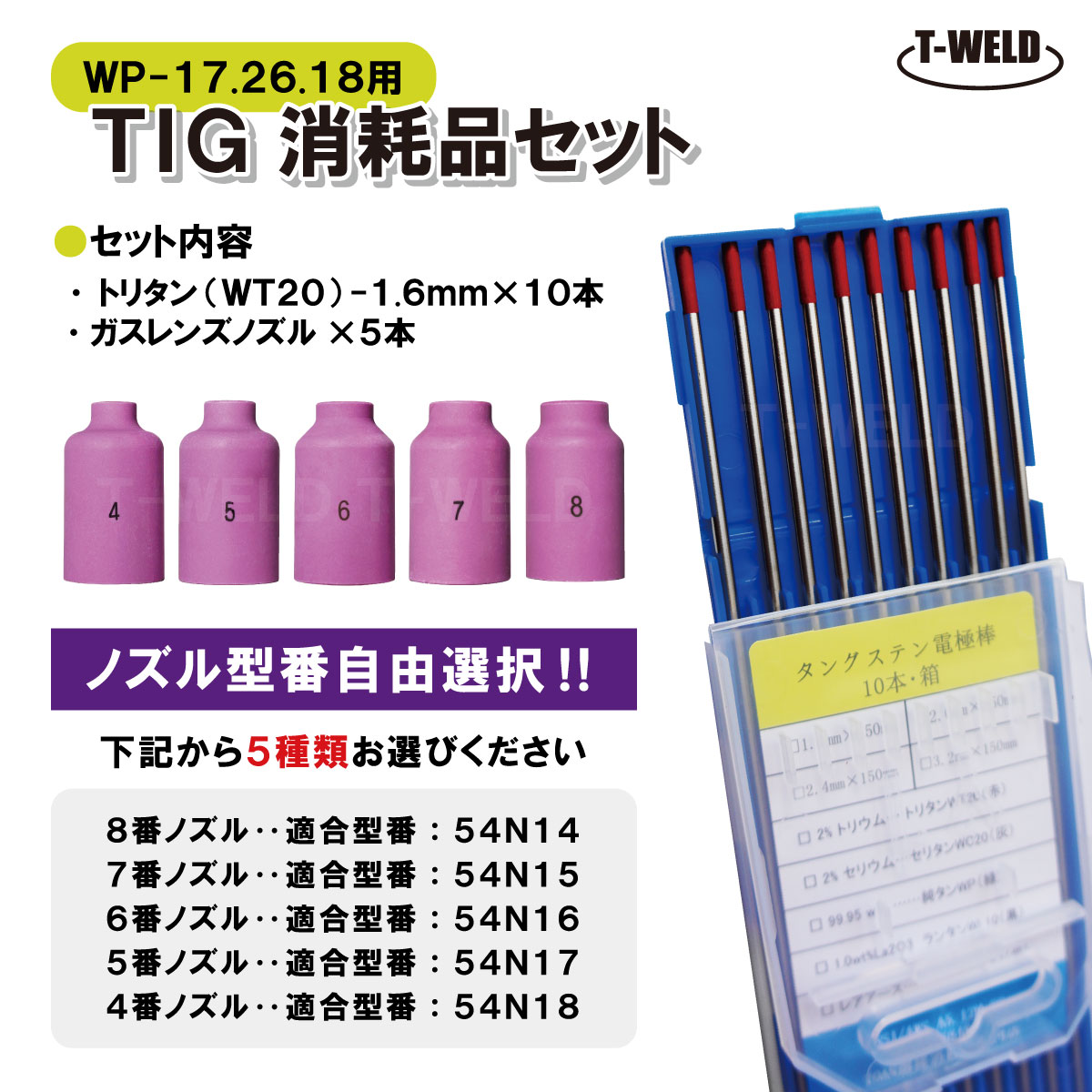 TIG 消耗品セット WP-17 WP-26 WP-18 ( WT20 1.6mm×10本 ガスレンズノズル×5本)