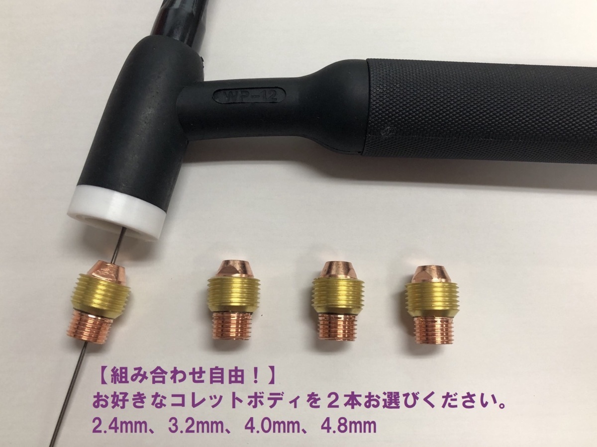 【組み合わせ自由!】TIG用コレットボディ WP-12/500A用 2.4mm、3.2mm、4.0mm、4.8mm 2本/1100円 適合型番:11WP65