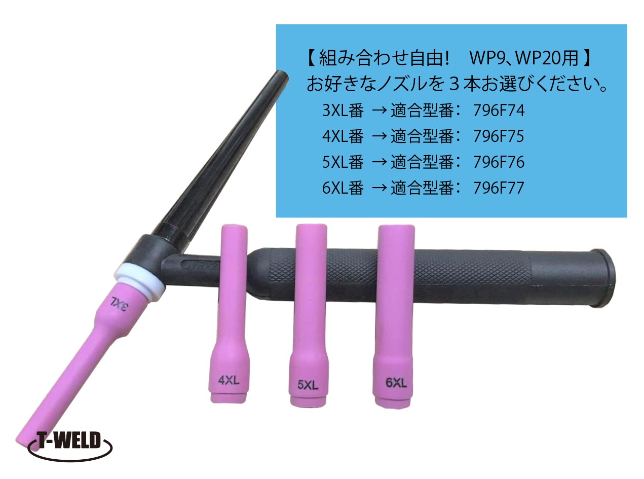 TIG溶接機 WP9/20用 標準ロングノズル 3本セット 組み合わせ自由 適合型番:796F74(3XL) 796F75(4XL) 796F76(5XL) 796F77(6XL)