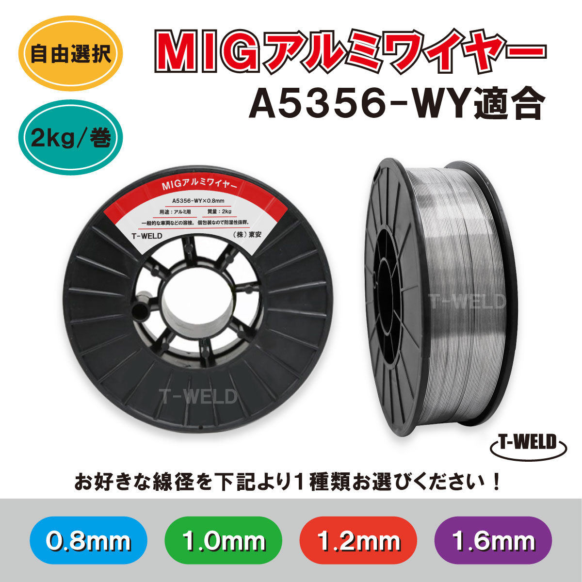 【線径自由選択!】 MIG アルミワイヤ A5356-WY 適合 線径(0.8mm 1.0mm 1.2mm 1.6mm )×2kg CE認定 スプール200mm 1巻