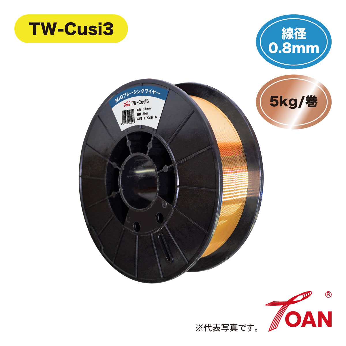 半自動溶接機 MIG溶接 ブレージングワイヤー ( ロウ付けワイヤー ) TW-Cusi3 0.8mm ( 重量選択: 2kg・5kg ) 1巻 スプール200mm