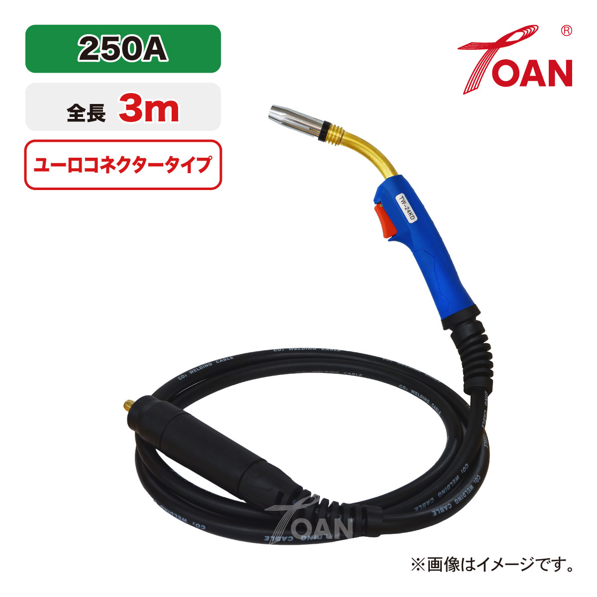 TOAN 半自動溶接機 CO2トーチ ユーロコネクター式 250A 全長: 3m TW-24KD 海外溶接機対応 インボイス対応領収書発行可 即日発送