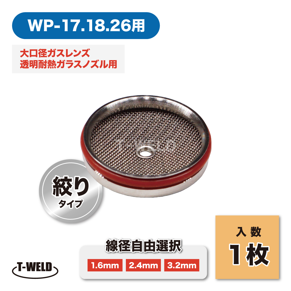 TIG溶接 アダプタ スクリーン網 1枚 ( WP-17/18/26 大口径ガスレンズ 透明耐熱ガラスノズル 絞りタイプ用 ) ( 線径自由選択:1.6 2.4 3.2mm)