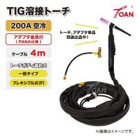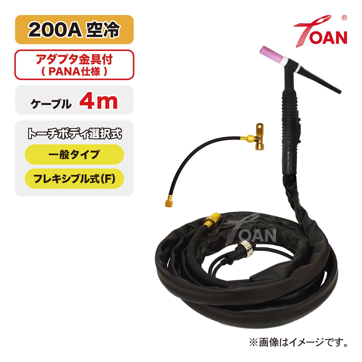 TIG溶接 トーチ 200A空冷 WP-26 長さ:4m アダプタ付き (一般・フレキシブル) ゴムカバー 適合型番:PANA YT-20TS2 YT-20TSF2 ダイヘン AW-26 AWF-26