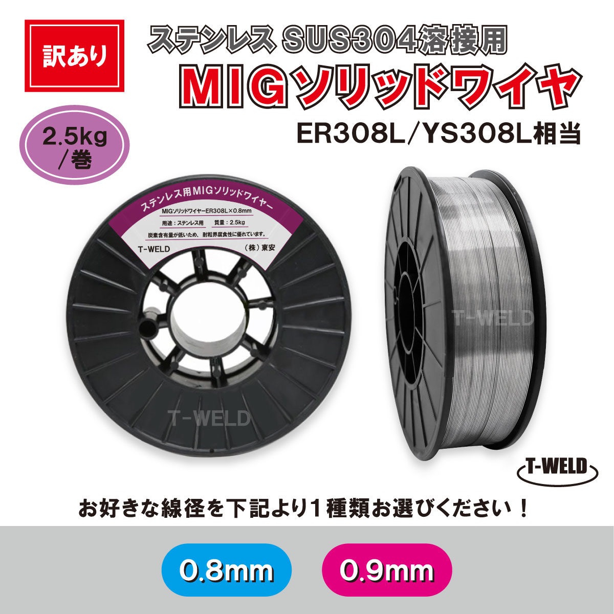 「訳あり:包装破れ」 線径自由選択: ステンレス 用 MIG ソリッドワイヤ ER308L YS308L 相当 線径( 0.8 0.9mm )×2.5kg・巻