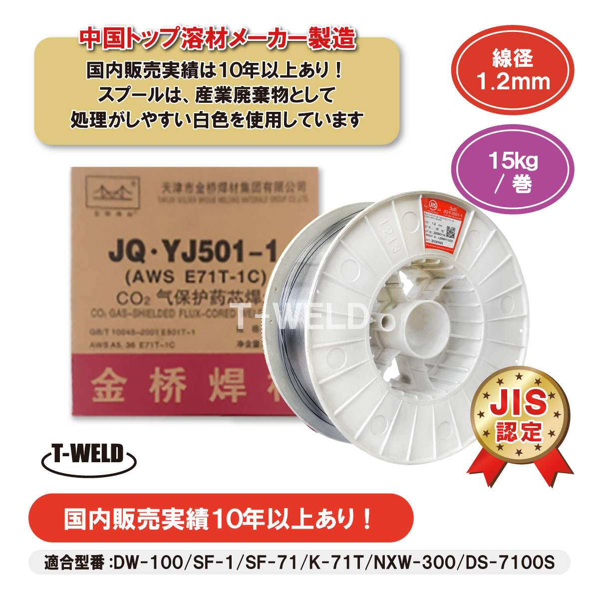 JIS認定 溶接 フラックス入り ワイヤー JQ・YJ501-1 1.2mm×15kg/巻 スラグ系 ( DW-100 SF-71 適合)インボイス領収書発行可 即日発送