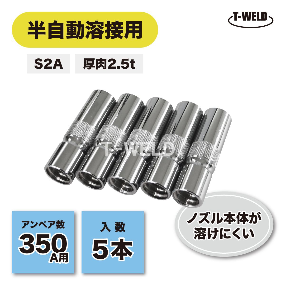 半自動 溶接 CO2 350A S2A ストレート 厚肉 2.5t ノズル TGN00038 U4167H16 適合 5本