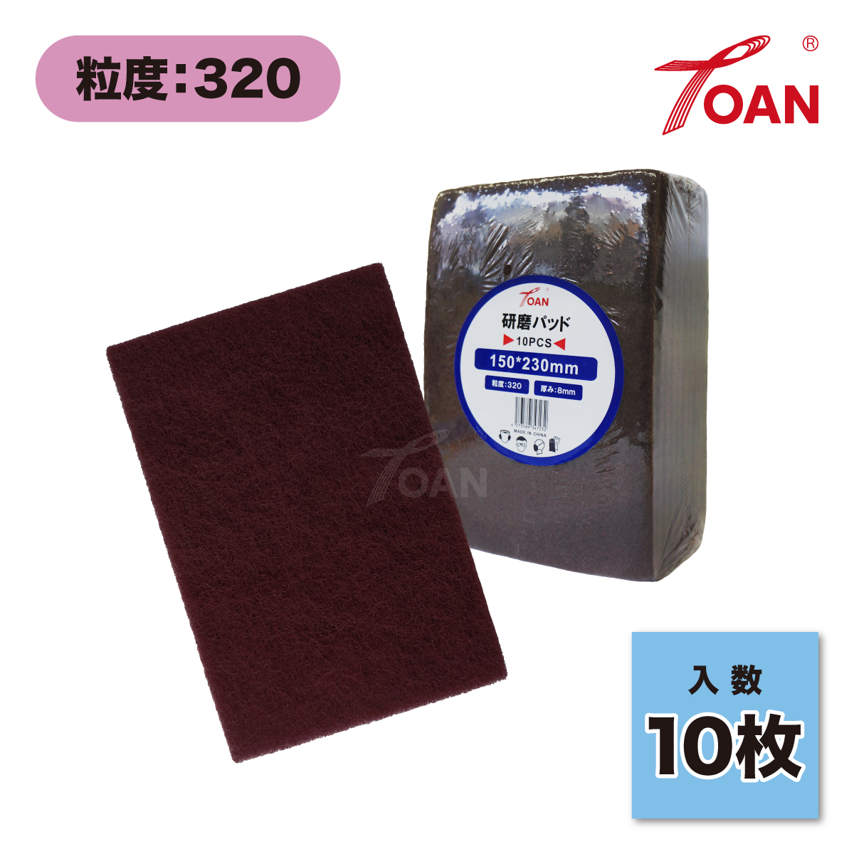 研磨パッド 粒度:320 10枚セット 150×230×厚み8mm ( カット可能 手作業用研磨シート ウロコ落とし IH コンロ 汚れ取り サビ取り )