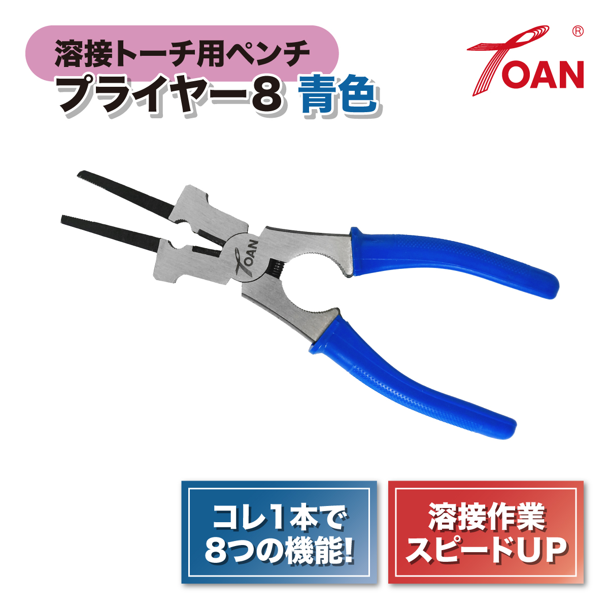プライヤー8 青色 4本セット (溶接トーチ用 ペンチ スパッタ除去 チップ・ノズル・絶縁筒の着脱 ワイヤーの切断・引き出し ノズルをたたく)