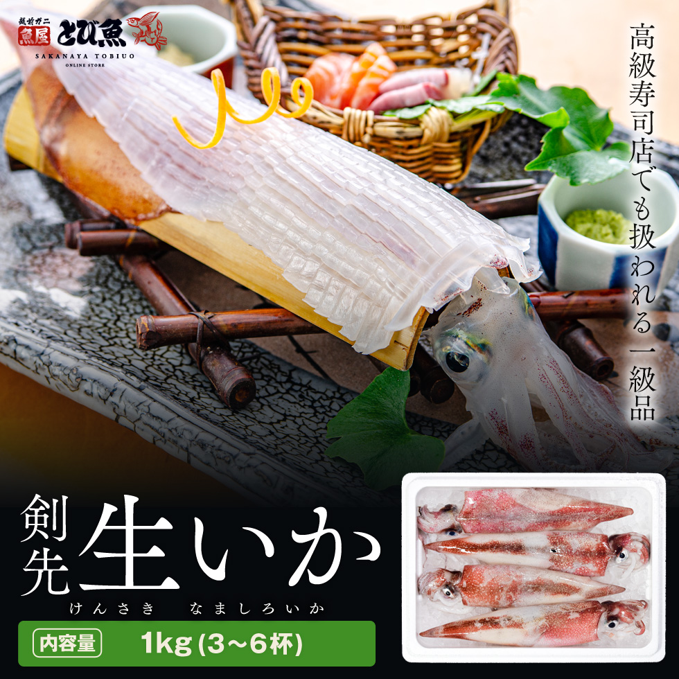 | 商品詳細 | 【鮮度と味に自信あり】 こだわりの福井県若狭湾産、朝どれの剣先いかを生のまま産地直送でお届け。 高鮮度なので、刺身・焼き・煮付けどんな料理にもできます。 【福井県若狭湾の剣先白いか】 輝きのある絶品の白い身 繊細な食感がありつつ、柔らかく、剣先いか特有の深い甘みが際立つ、まさに絶品。 【福井県若狭湾世久見港 水揚げ】 日本海を代表する海産物の宝庫 福井県 若狭湾 若狭湾は、暖流の対馬海流と寒流のリマン海流が複雑に流れ込む、全国有数の好漁場です。天然礁による複雑な潮の流れや冬の寒さが影響した冷たく清らかな海水、豊富なエサにも恵まれるなどの好環境が自慢です。 【好環境で育った海の幸だから旨い】 福井の魚介を食べたら他のは食べられないと言われる海の幸を是非ご賞味下さい。 【厳選剣先白いか3〜6杯】 食べ応え抜群内容量1kgを産地直送 |