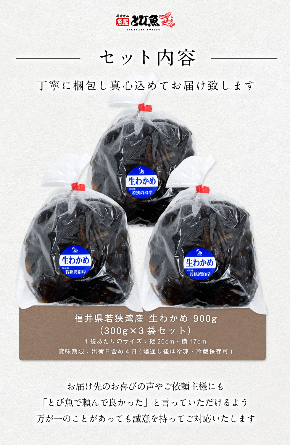 【産地直送】福井県若狭湾産 生わかめ 900g(300g×3袋セット)無添加 無着色 無塩 ワカメ 若布 国産わかめ 業務用 サラダ 送料無料