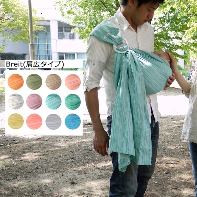 ※パパにもママにもお似合いの人気色「翡翠」。モデル着用の翡翠(ひすい)はオリジナルタイプ(肩幅スリム)です。リングが白ですが、実際は紫です(個別の画像を参照してください)。