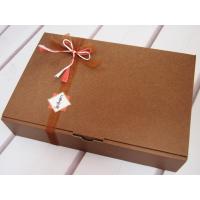 シンプルな茶のギフトボックスに、紅白の水引風のラッピングでお届けします