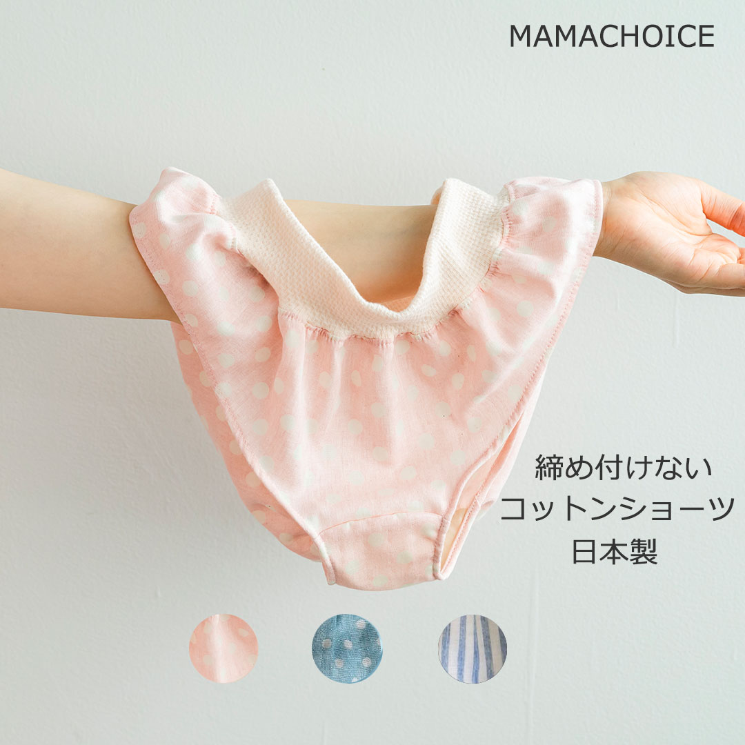 ただ、ダブルガーゼ部分のギャザーが多めになり、ヒップまわりと脚ぐりにゆとりがでます。