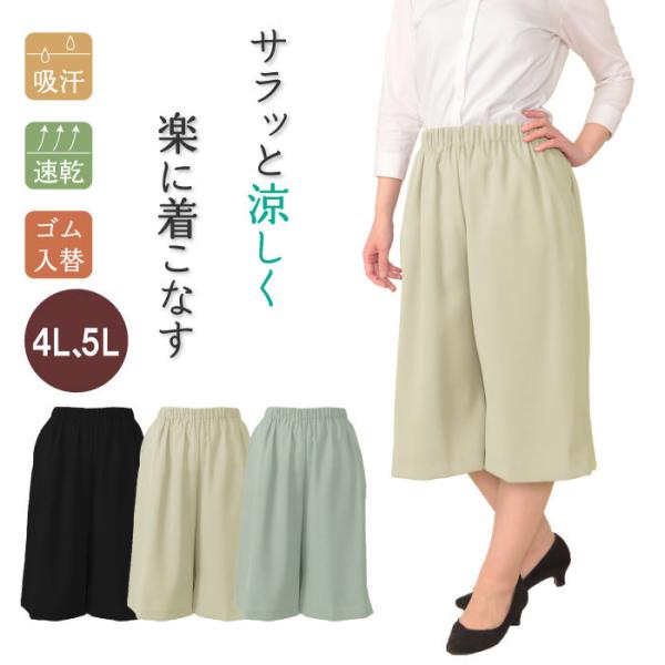 [72290] 大きいサイズ 4L 5L シニアファッション レディース 60代 70代 80代 ウエストゴム シニア キュロット ひざ丈 夏 総丈 64cm総ゴム 涼しい 春