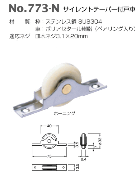 ベスト サイレントテーパー付戸車 No.773-N / 1個 (引戸金物 引き戸 戸車 ステンレス 交換 株式会社ベスト BEST 金物)