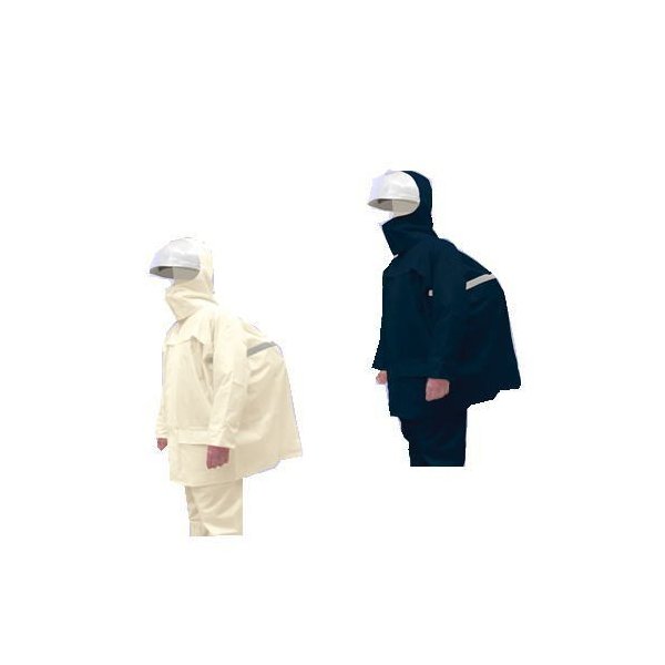 クリアフードでヘルメットの上からでもかぶることができ、頭の動きに応じてフードが動く安全設計です。