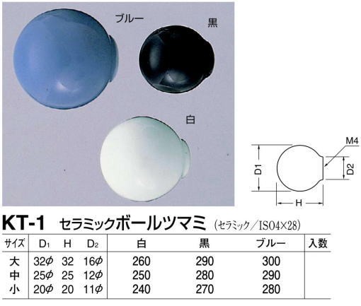 シロクマ 白熊印・KT-1 セラミック ボールツマミ 中 仕上:ブルー