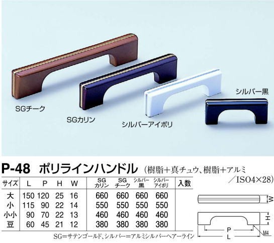 シロクマ 白熊印・P-48 ポリラインハンドル 豆(全長=60mm ビスピッチ=45mm)