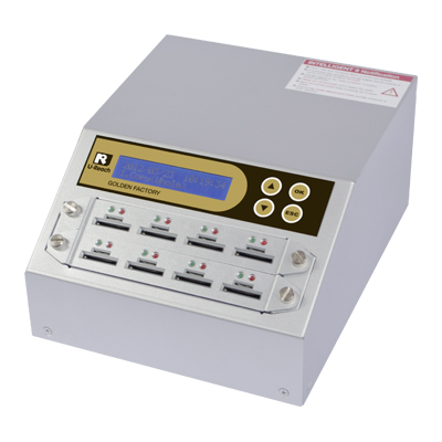 商品名:8ポート SDデュプリケータ Intelligent 9 Golden SD908G 1:7のコピーおよび最大8枚のSDカードの同時消去が可能。ログ出力機能搭載。転送速度33MB/秒