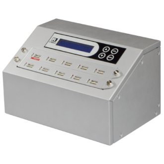 商品名:10ポート USBデュプリケータ Intelligent 9 Silver UB910S 1:9のコピーおよび最大9個のUSBメディアの同時消去が可能。転送速度33MB/秒