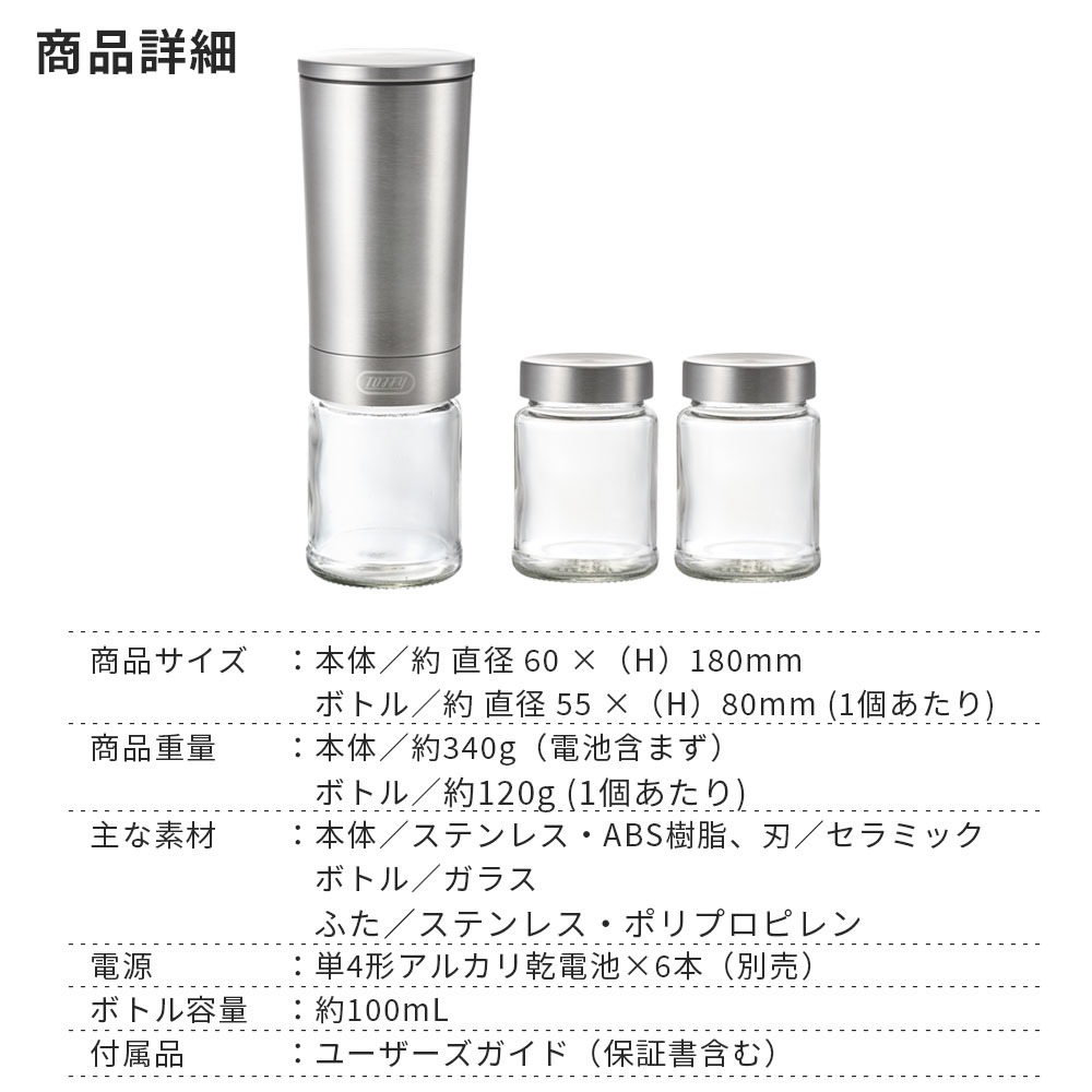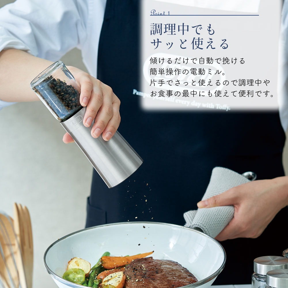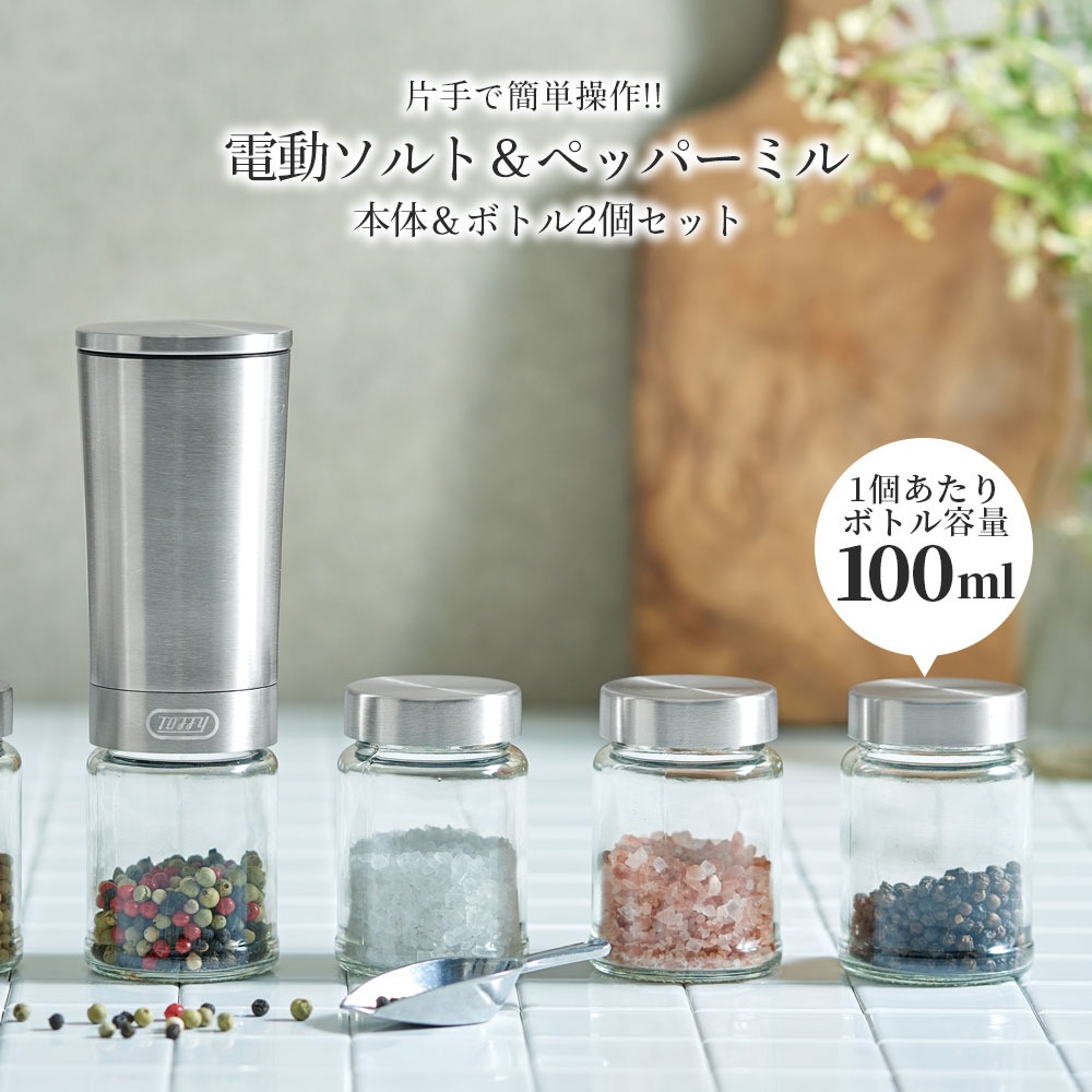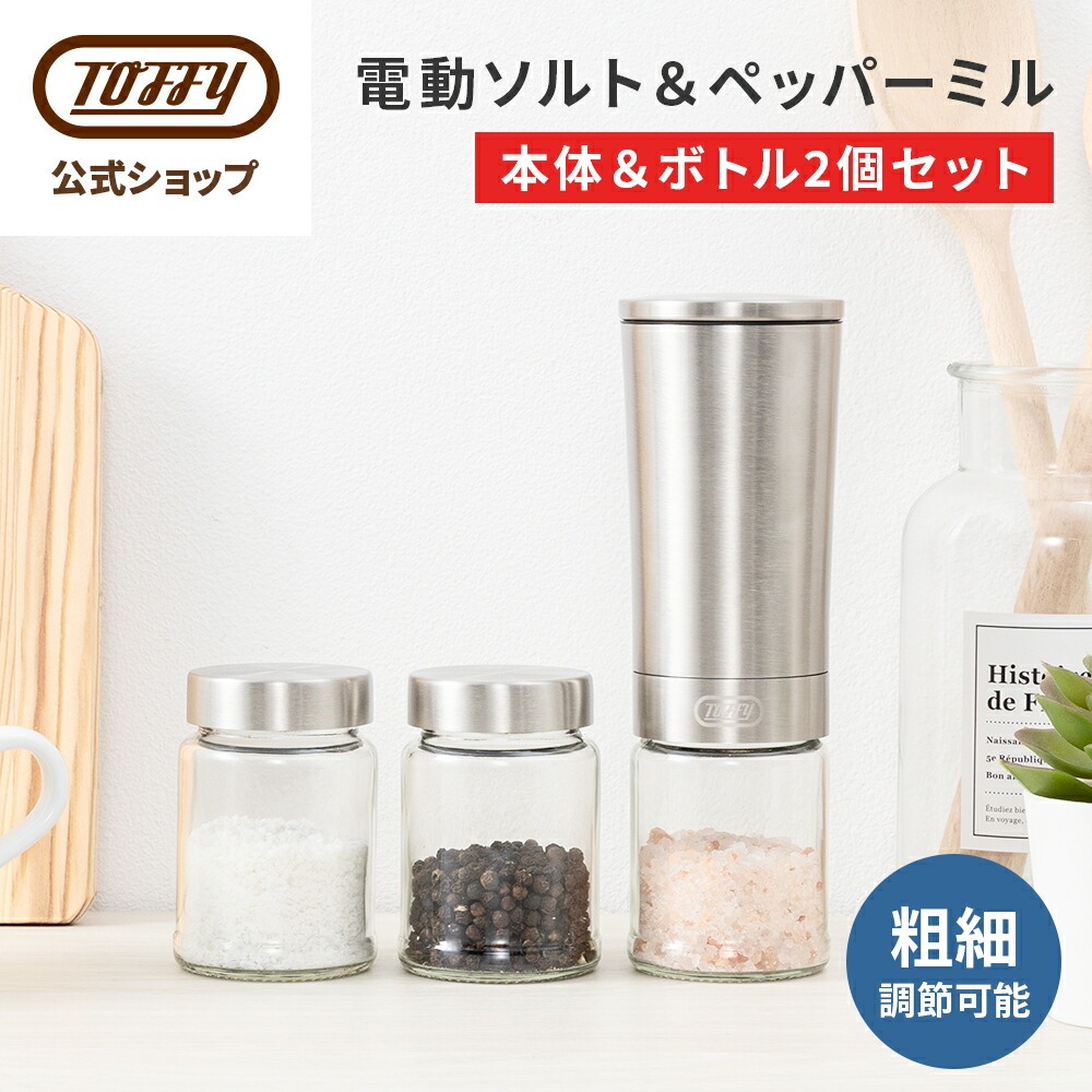 電動ミル 本体&ボトル2個セット K-EM1 ペッパーミル ステンレス 調味料ボトル おしゃれ 調味料挽き 粗さ調整 便利 トフィー Toffy 公式