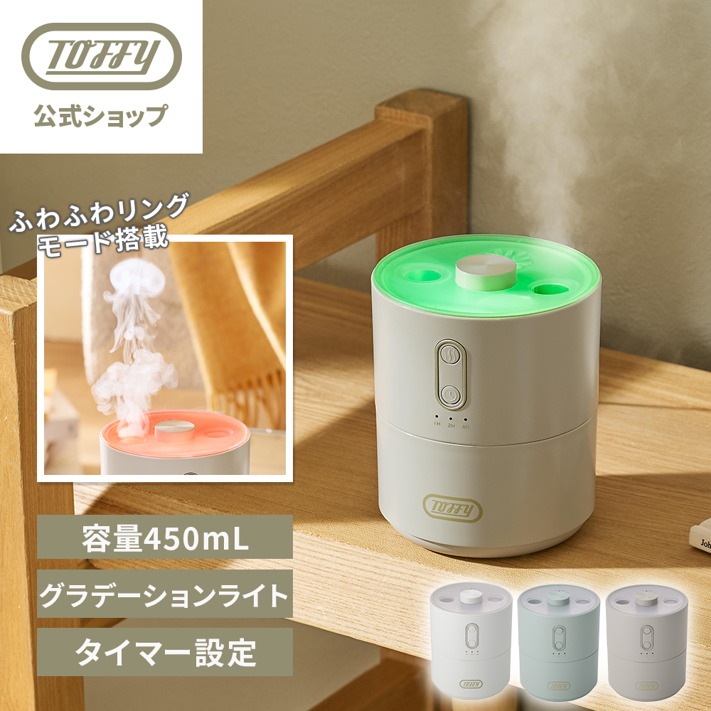【新商品】 Toffy 超音波 加湿器 卓上 コンパクト 450mL ミスト 選べる かわいい クラゲミスト タイマー LEDライトモード トフィー 公式